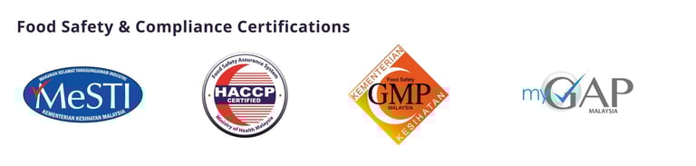 Certificate Export Health Cert, HACCP, Lab Test Report (upon request)